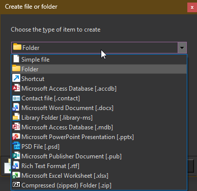 What you describe is exactly how FileVoyager’s Create Item is supposed to behave.